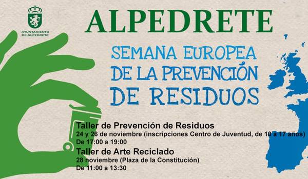 La propuesta del Ayuntamiento de Alpedrete se divide en dos partes. Los días 24 y 26 de noviembre se realizarán talleres de prevención de residuos en el Centro de Juventud de 17:00 a 19:00. Esta actividad está programada para jóvenes desde los 10 años (5º de Primaria) a los 17. Para participar en ellas es necesario inscribirse en el Centro de Juventud. El horario para hacerlo presencialmente es lunes y miércoles de 10:00 a 14:00, y los martes y jueves de 15:00 a 20:00. También se puede llamar al teléfono 918571394. Es conveniente que las personas que se apunten traigan materiales reciclados como bandejas de poliespan, tubos de cartón, botellas, plásticos, cartones de leche o zumo, tapones, envases de todo tipo, etc.