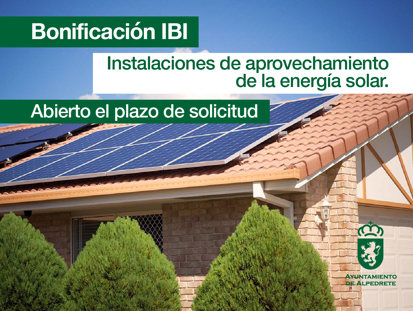 24 marzo 2026 Tweet Categorías: Hacienda y contratación Etiquetas: impuestos, BonificaciónLos requisitos, plazos y la documentación necesaria se pueden consultar en los documentos a continuación.IBI. Ordenanza fiscal reguladora del impuesto de bienes inmueblesBando 2026 bonificación IBI por por la instalación de sistemas de aprovechamiento térmico o eléctrico de la energía proveniente del Sol para autoconsumoSede electrónica. Ayuntamiento de Alpedrete Compartir Compartir Noticias Relacionadas while( $my_query->have_posts() ) { $my_query->the_post(); ?> Bonificación en el IBI. Instalaciones de aprovechamiento de la energía solar