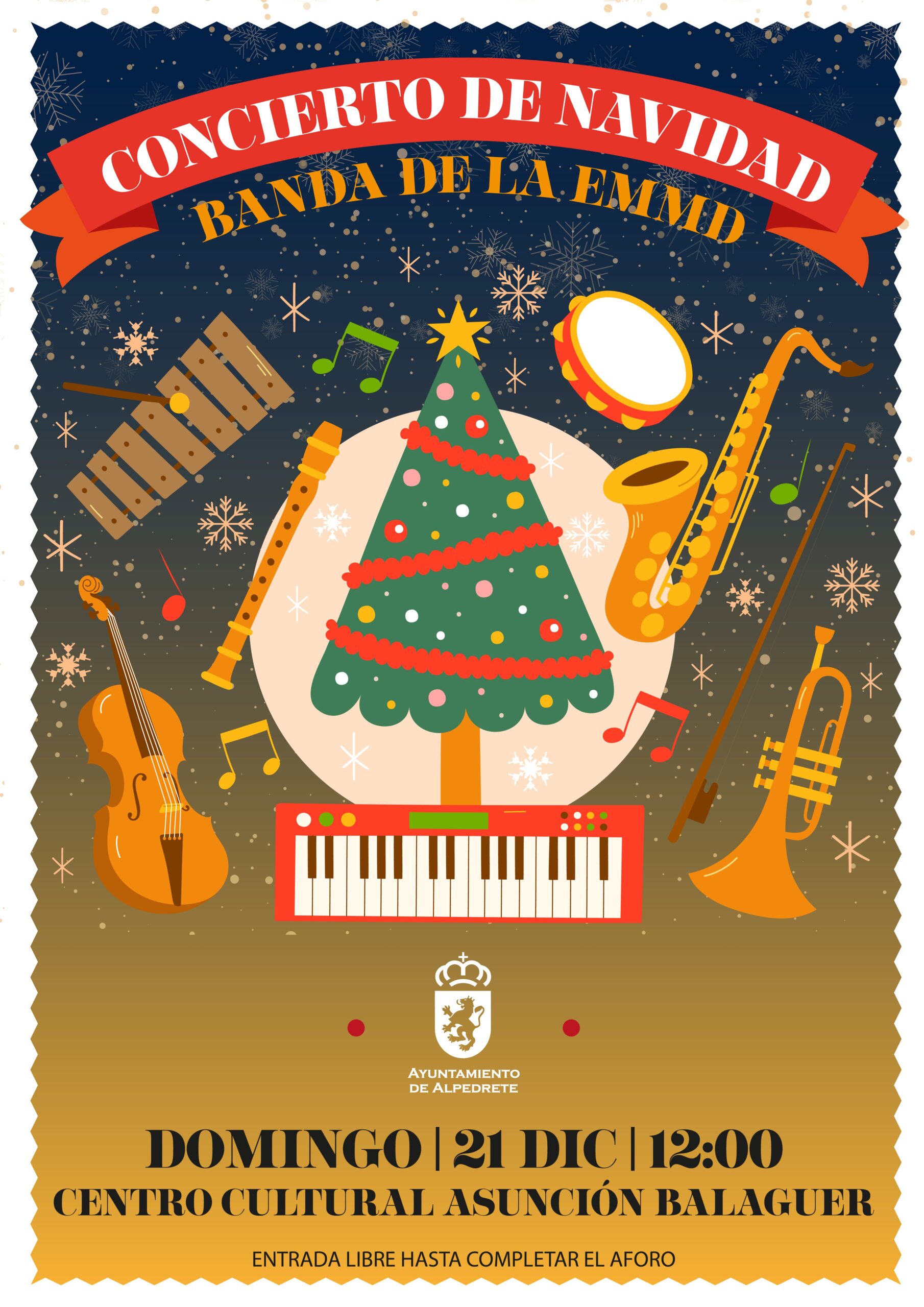 Concierto de Navidad de la Banda Municipal de Alpedrete. Un variado repertorio donde no faltarán los villancicos. Centro Cultural Asunción Balaguer. Entrada libre hasta completar aforo.