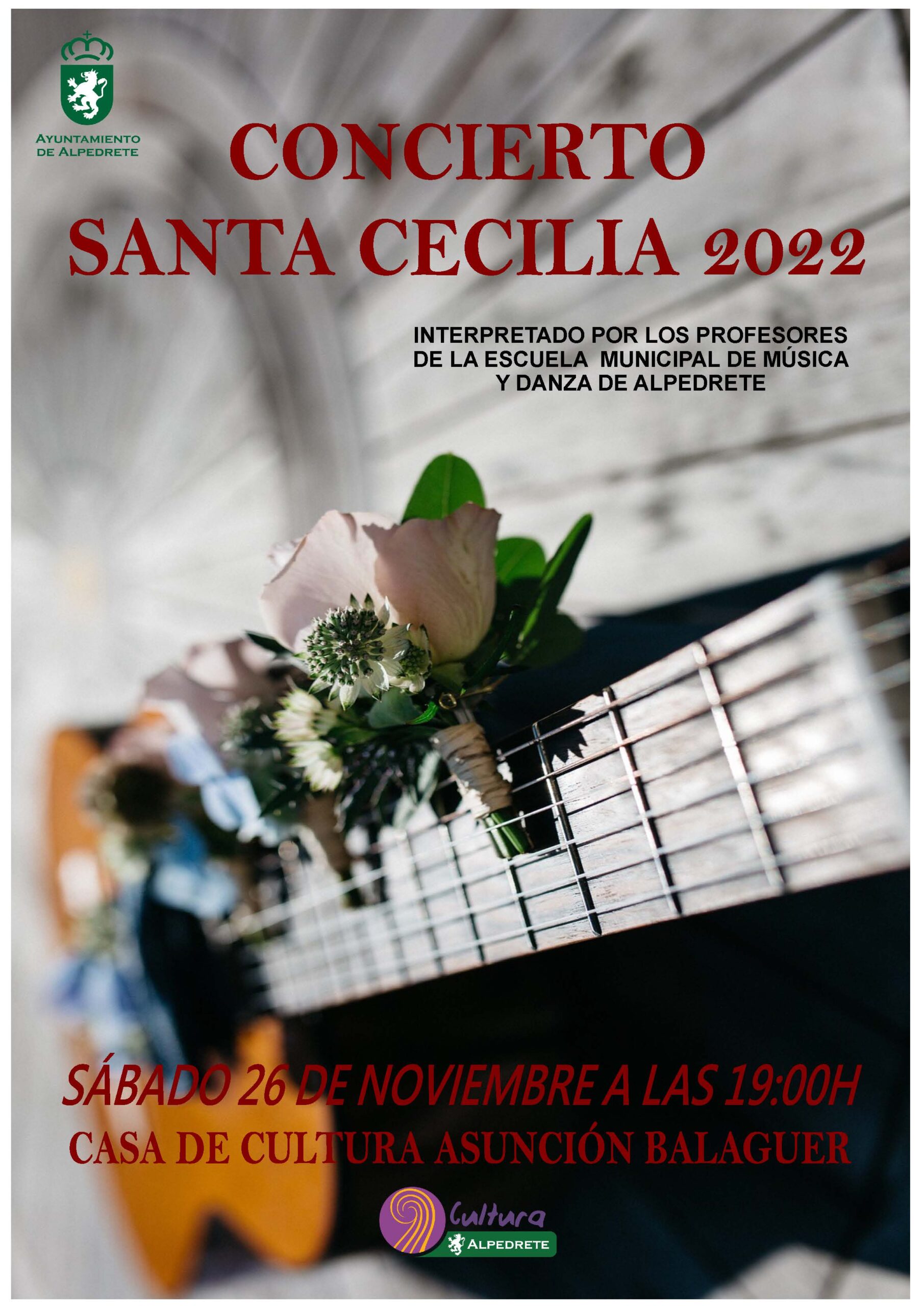 El sábado 26 de noviembre a las 19 horas, se celebrará en la Casa de Cultura de Alpedrete el concierto de Santa Cecilia. El concierto es ofrecido, como todos los años, por los profesores de la Escuela Municipal de Música y Danza.