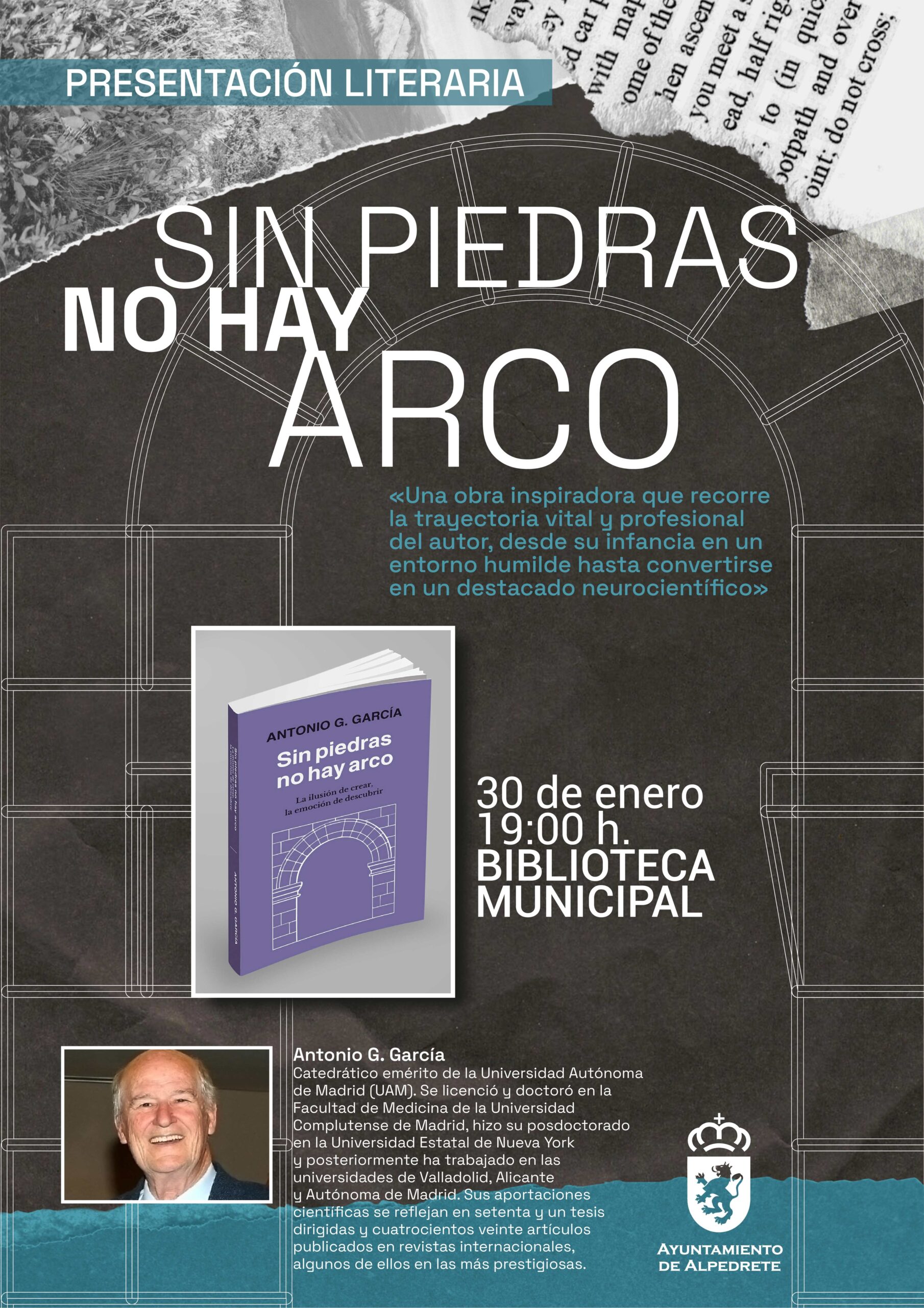 El viernes 30 de enero a las 19:00 h., no te puedes perder la presentación, en la Biblioteca Municipal, del libro “Sin piedras no hay arco. La ilusión de crear, la emoción de descubrir” de Antonio G. García.