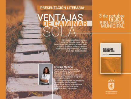 El próximo viernes 3 de octubre, la Biblioteca Municipal de Alpedrete acoge la presentación del libro Ventajas de caminar sola, de la autora Cristina Medina. La cita comenzará a las 19:00 horas, con entrada libre hasta completar aforo.
