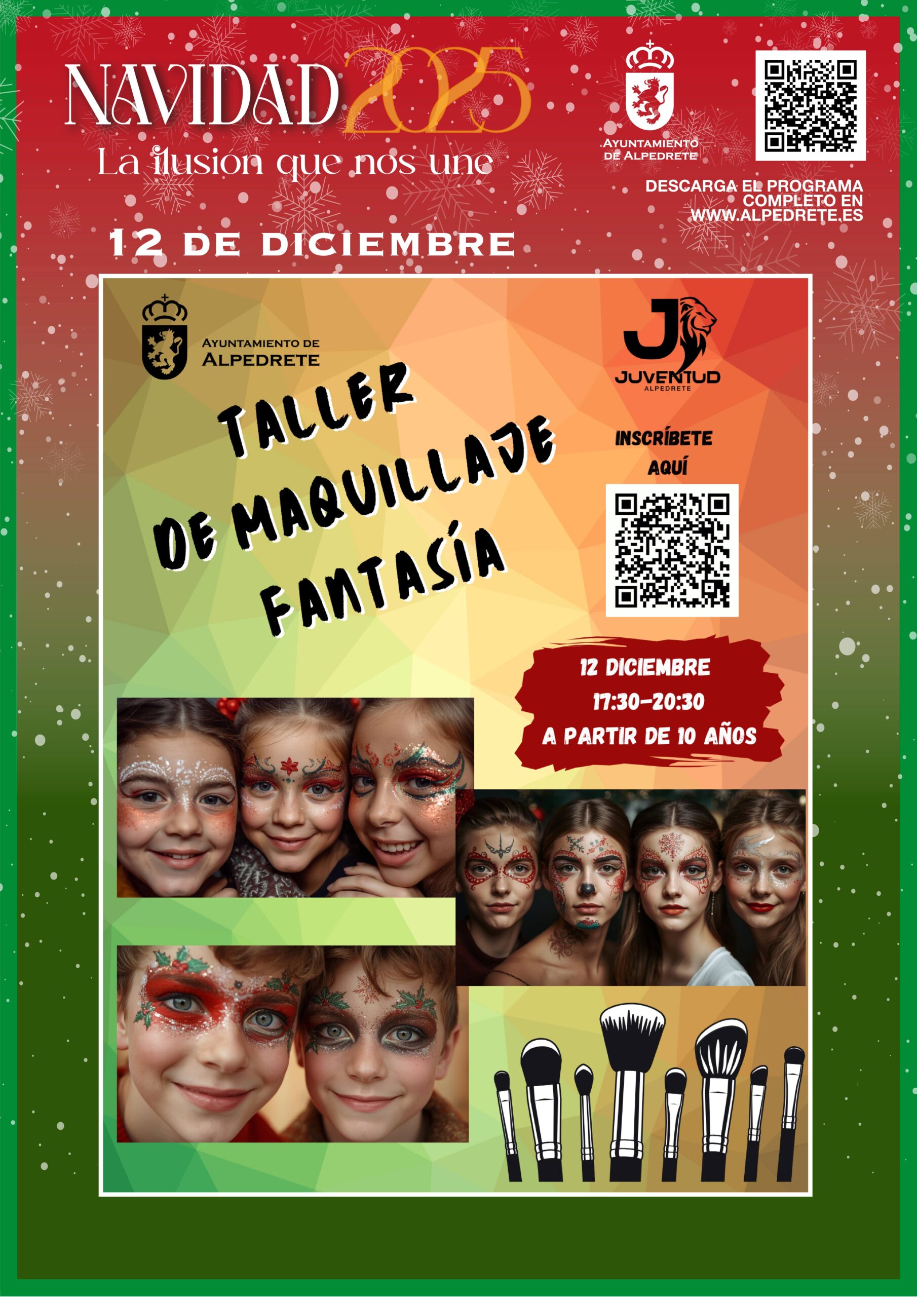La concejalía de Juventud pone en marcha este taller dentro de su programación especial de Navidad. Enseñaremos paso a paso a crear maquillajes espectaculares para estas fiestas: diseños llenos de brillo, formas creativas y detalles que transforman cualquier rostro en una fantasía.