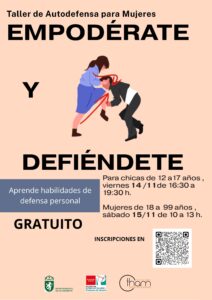 La Mancomunidad de Servicios Sociales THAM organiza un taller práctico, pensado para que salgas de él con herramientas reales de autoprotección. Aprenderás habilidades básicas de defensa personal y estrategias sencillas para aumentar tu seguridad y tu capacidad de respuesta. Es una actividad grupal en la que no sólo se enseña a reaccionar ante una amenaza, sino que también fomenta una vida más activa y consciente. Se aprenderán técnicas físicas y verbales para disuadir, evitar o escapar de situaciones peligrosas; herramientas reales para la protección, en lugar de depender únicamente de terceros Enseñaremos a ser más conscientes del entorno, a identificar señales de peligro y a confiar en la intuición El objetivo del taller es fomentar la seguridad, el respeto propio y la prevención a través del conocimiento y la confianza Fechas y horarios Chicas de 12 a 17 años: viernes 14 de noviembre, de 16:30 a 19:30 h. Mujeres de 18 a 99 años: sábado 15 de noviembre, de 10:00 a 13:00 h. Lugar Sala polivalente del Centro de Mayores Los Canteros. Actividad gratuita. Inscripción previa a través de este enlace