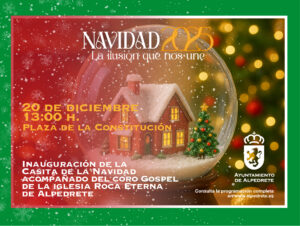 La plaza de la Constitución es el enclave de las múltiples actividades programadas en la Casita de La Navidad, las cuales puedes consultar en este enlace. Inauguraremos este espacio tan especial el día 20 de diciembre a las 13:00 h, acompañados del coro gospel de la iglesia Roca Eterna de Alpedrete. Consulta la programación completa de esta Navidad aquí.
