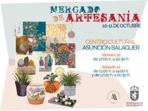 El viernes 10 y sábado 11 de octubre, el Centro Cultural Asunción Balaguer acoge una nueva edición del Mercado de Artesanía, en el que participan la Asociación de Artistas y Artesanos de Alpedrete junto a otros profesionales del sector. Será una ocasión ideal para disfrutar del arte local y descubrir piezas únicas elaboradas a mano: cerámica, pintura, decoración, bisutería, joyería, tejidos, flores secas y muchas otras propuestas que reflejan talento, dedicación y cariño. Una oportunidad perfecta para apoyar el comercio de proximidad y llevarte a casa objetos con personalidad propia. Horario Viernes 10: de 17:00 a 20:30 h. Sábado 11: de 11:00 a 14:00 h. y de 17:00 a 20:30 h. Un plan para pasear, inspirarse y dejarse sorprender por la creatividad de nuestros artesanos.