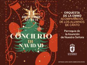 17:30 h. Tradicional concierto de Navidad de la orquesta de la EMMD de Alpedrete, acompañada de los alumnos de canto. Entrada libre hasta completar aforo. Parroquia de la Asunción de Nuestra Señora. El programa completo de actividades navideñas puede consultarse a través de este enlace.