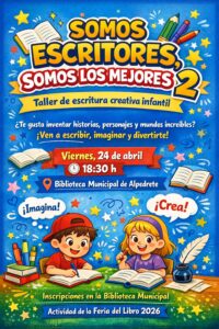 ¡Atención, pequeños autores en Alpedrete! Vuelve el taller "Somos escritores, somos los mejores", una oportunidad genial para que los niños de 7 a 10 años se diviertan creando sus propias historias. La actividad la dirige Ester Sol (escritora y artista) y es parte de la programación de la Feria del Libro 2026. ¿Cuándo? El viernes 24 de abril a las 18:30 h. ¿Dónde? En la Biblioteca Municipal de Alpedrete. Importante: Las plazas suelen volar, así que pásate por la biblioteca para hacer la inscripción previa. ¡No dejes que se lo cuenten, ven a que descubran el escritor que llevan dentro!
