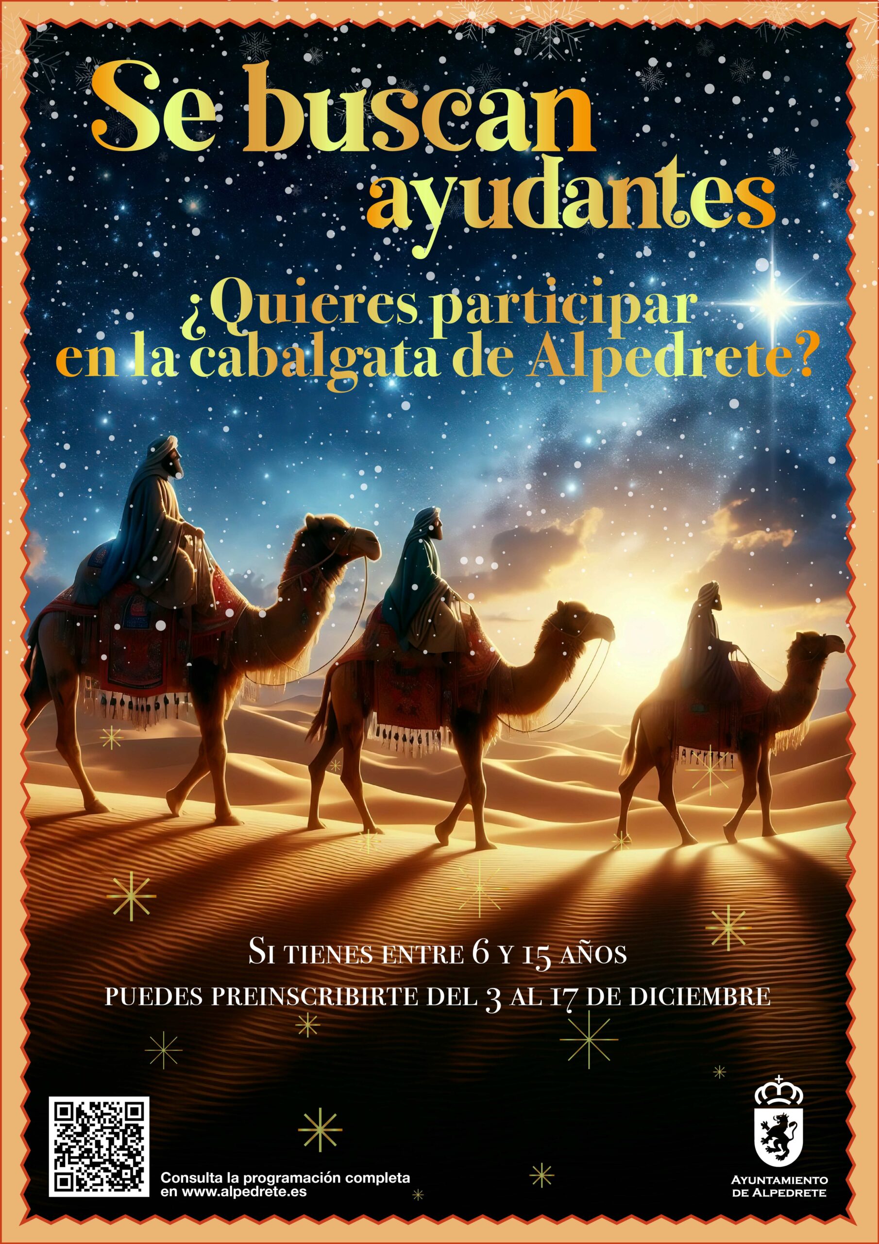 Sus majestades los tres Reyes Magos buscan ayudantes en nuestro municipio para la cabalgata del día 5 de enero.