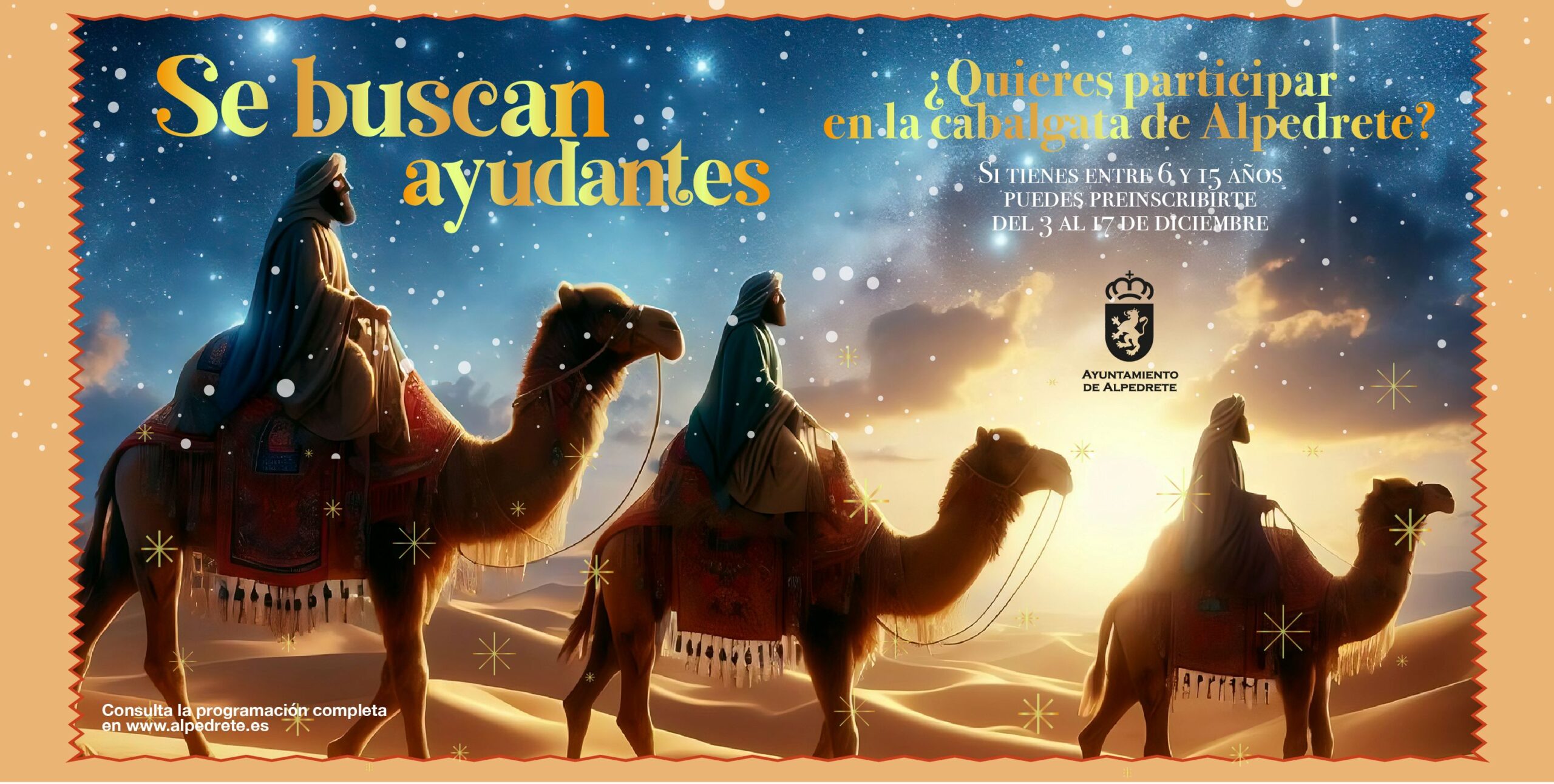 Sus majestades los tres Reyes Magos buscan ayudantes en nuestro municipio para la cabalgata del día 5 de enero.