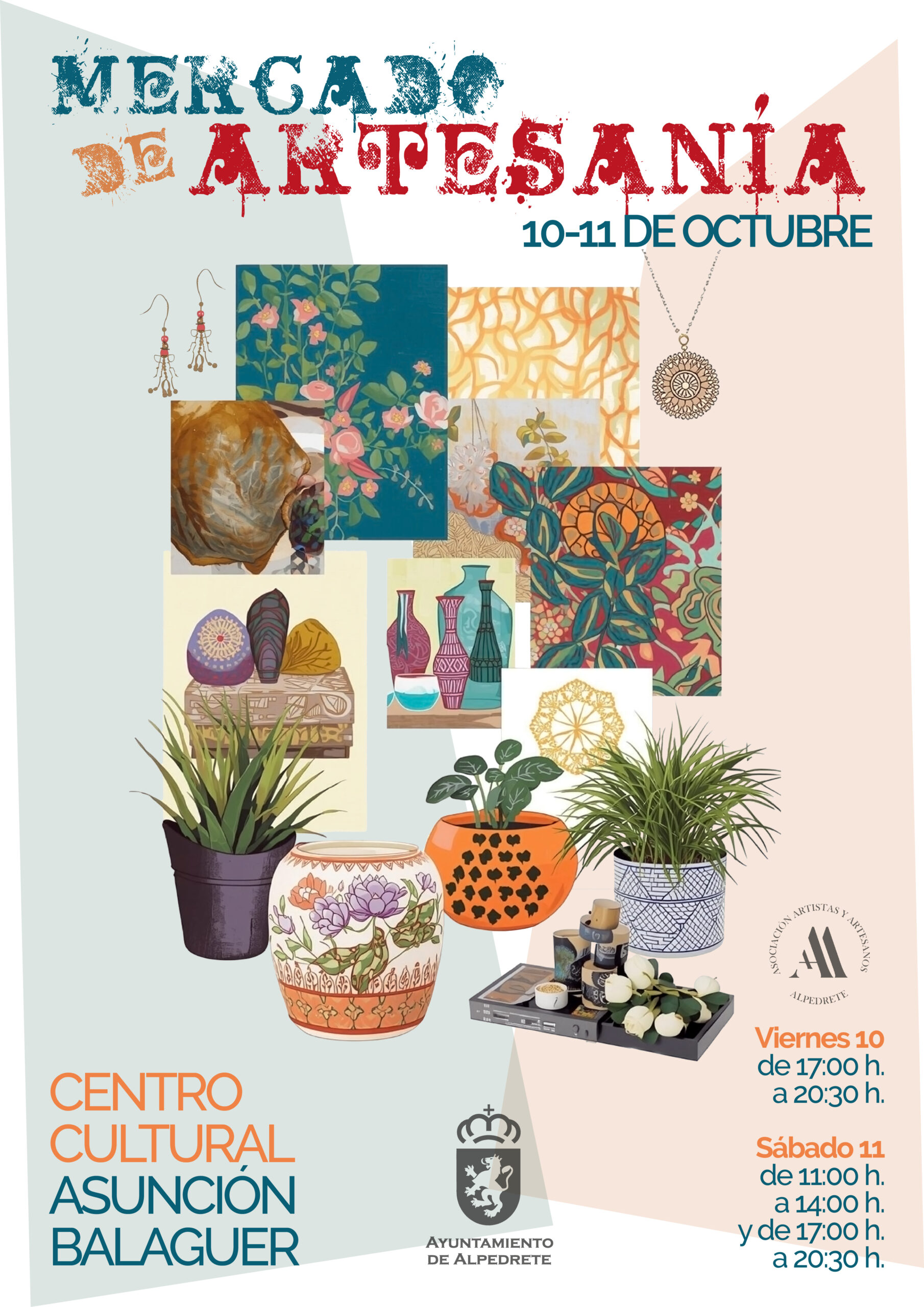 El viernes 10 y sábado 11 de octubre, el Centro Cultural Asunción Balaguer acoge una nueva edición del Mercado de artesanía, en el que participan la Asociación de Artistas y Artesanos de Alpedrete junto a otros profesionales del sector.