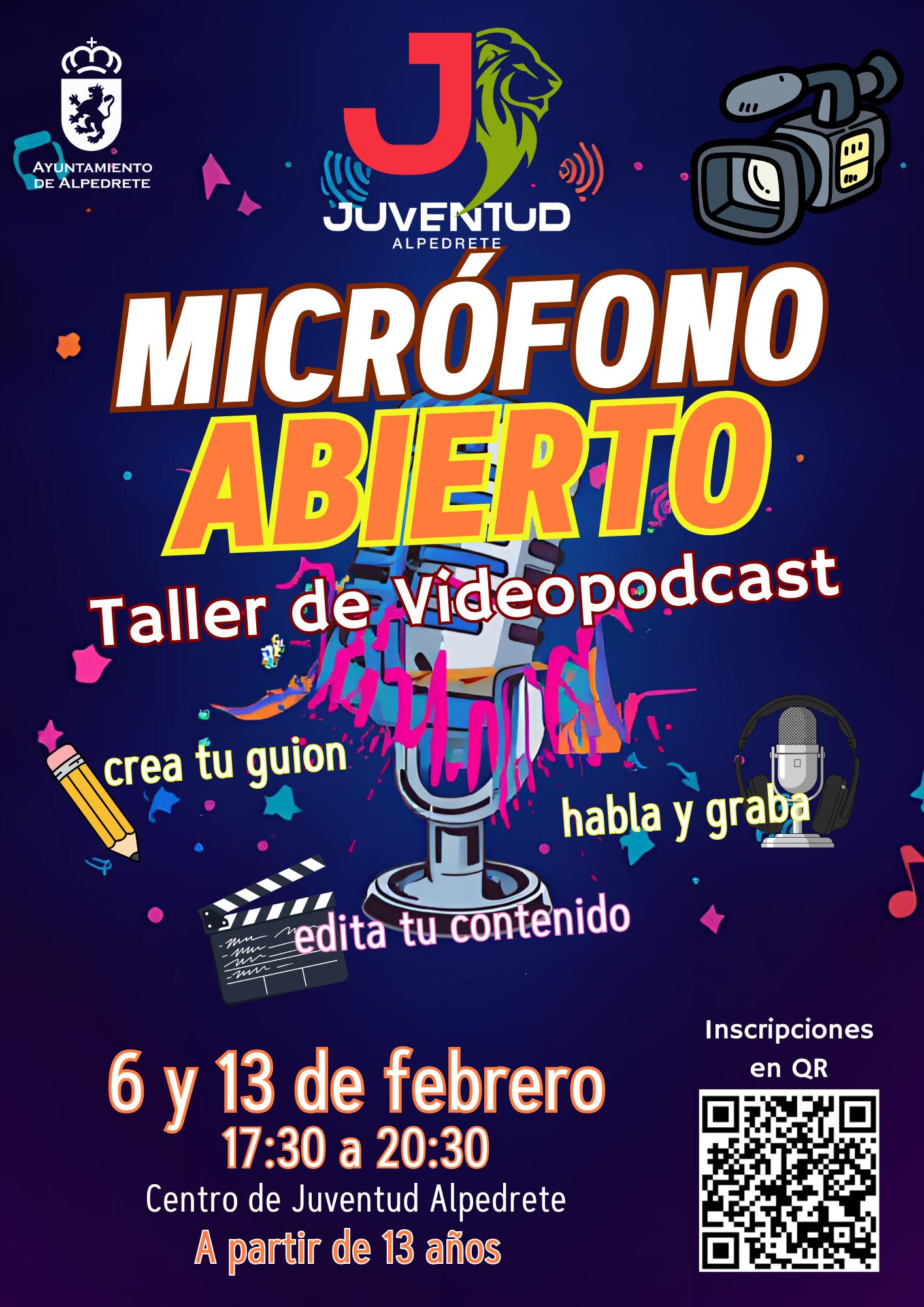 El Centro de Juventud de Alpedrete organiza “Micrófono abierto”, un taller práctico para aprender a crear un podcast y un videopodcast en dos sesiones, del guion a la grabación y la edición.
