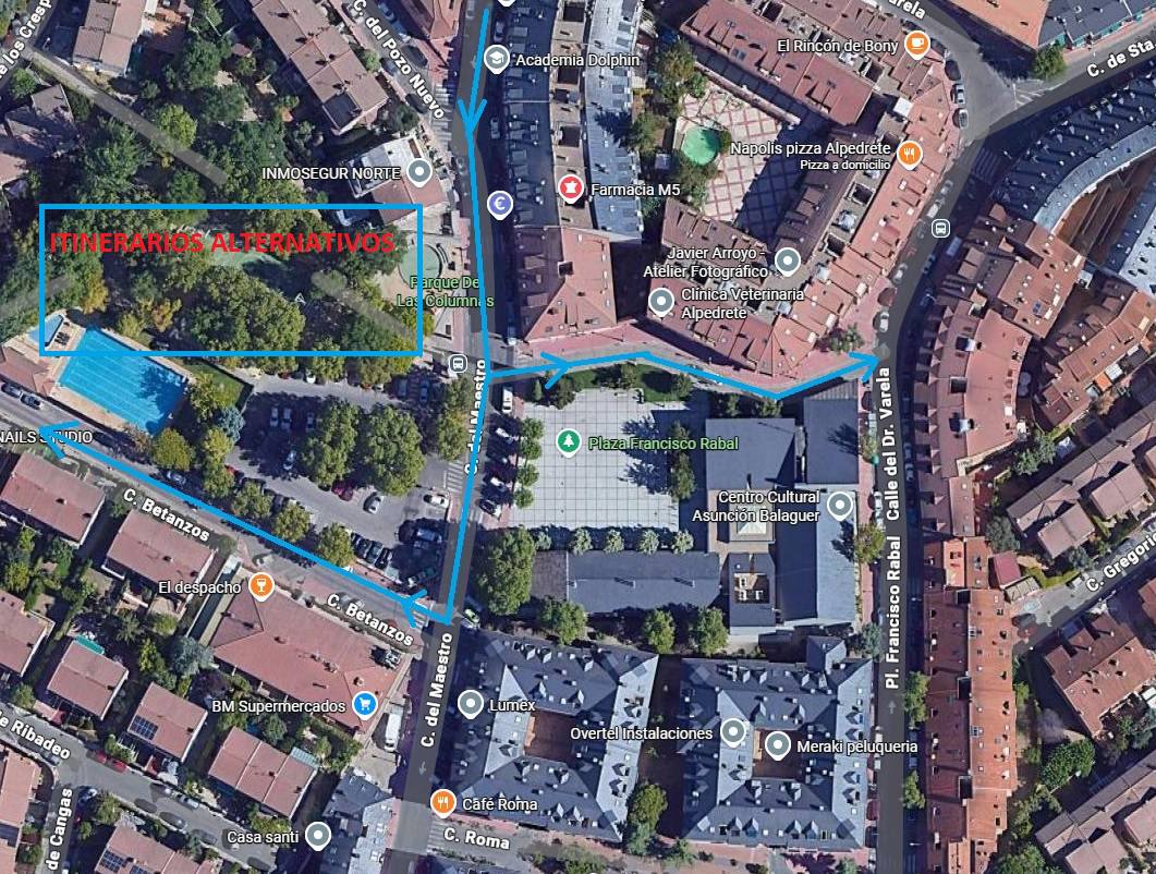 La obra se iniciará desde la calle Primavera. La circulación de vehículos por la calle del Maestro quedará habilitada únicamente mediante un itinerario alternativo, que discurrirá por: