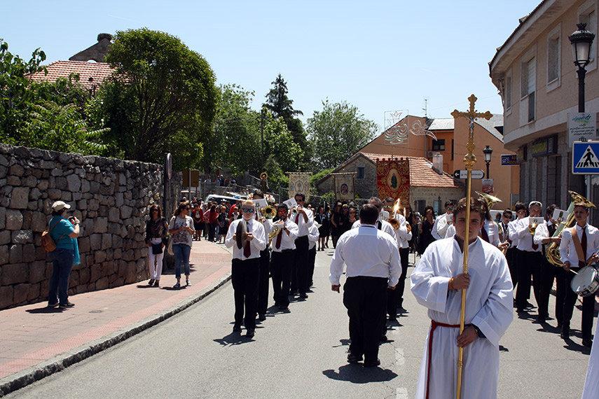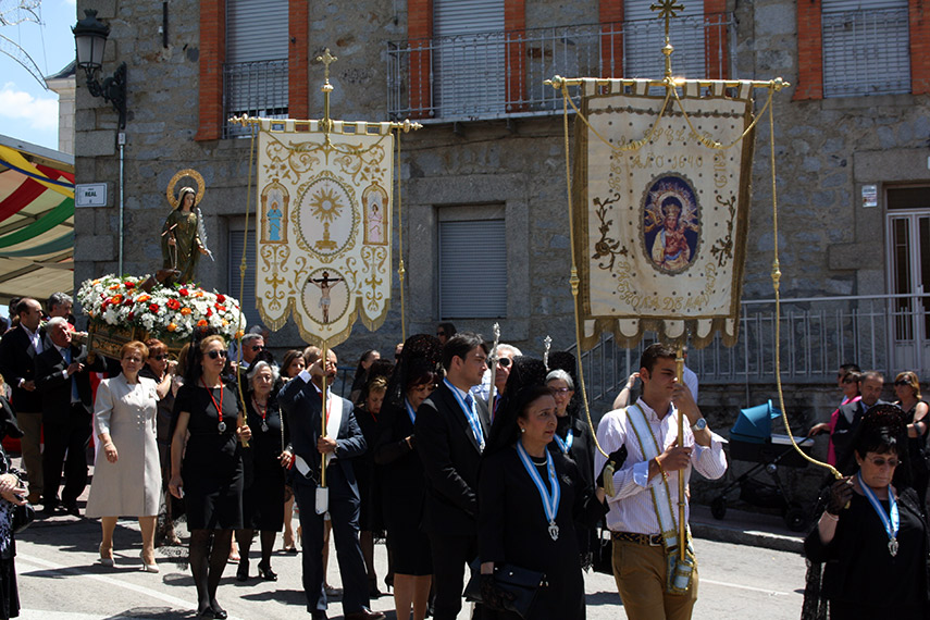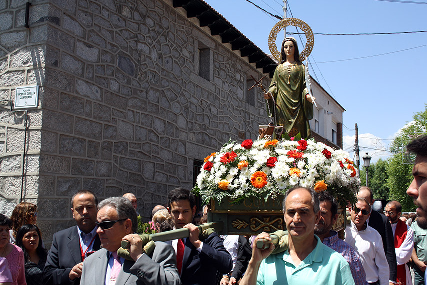 En el día de la Fiesta de Santa Quiteria se ha celebrado la tradicional procesión. A la salida de la Parroquia de la Asunción de Nuestra Señora la esperaba un enrejado con los ramos de flores que se han ido depositando a lo largo de la mañana. Acompañada por la Banda Municipal, Santa Quiteria ha sido llevada en andas por el centro de Alpedrete y ha vuelto a la parroquia, donde permanecerá hasta el martes 23 de mayo que bajará a su ermita.