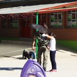 El interés de los alumnos ha aumentado cuando las aves han comenzado a volar, sobre todo porque han podido participar convirtiéndose en portadores de las rapaces. Todos han querido enguantar su mano para recibir el vuelo de las aves y ofrecer en su puño la comida que las premia.